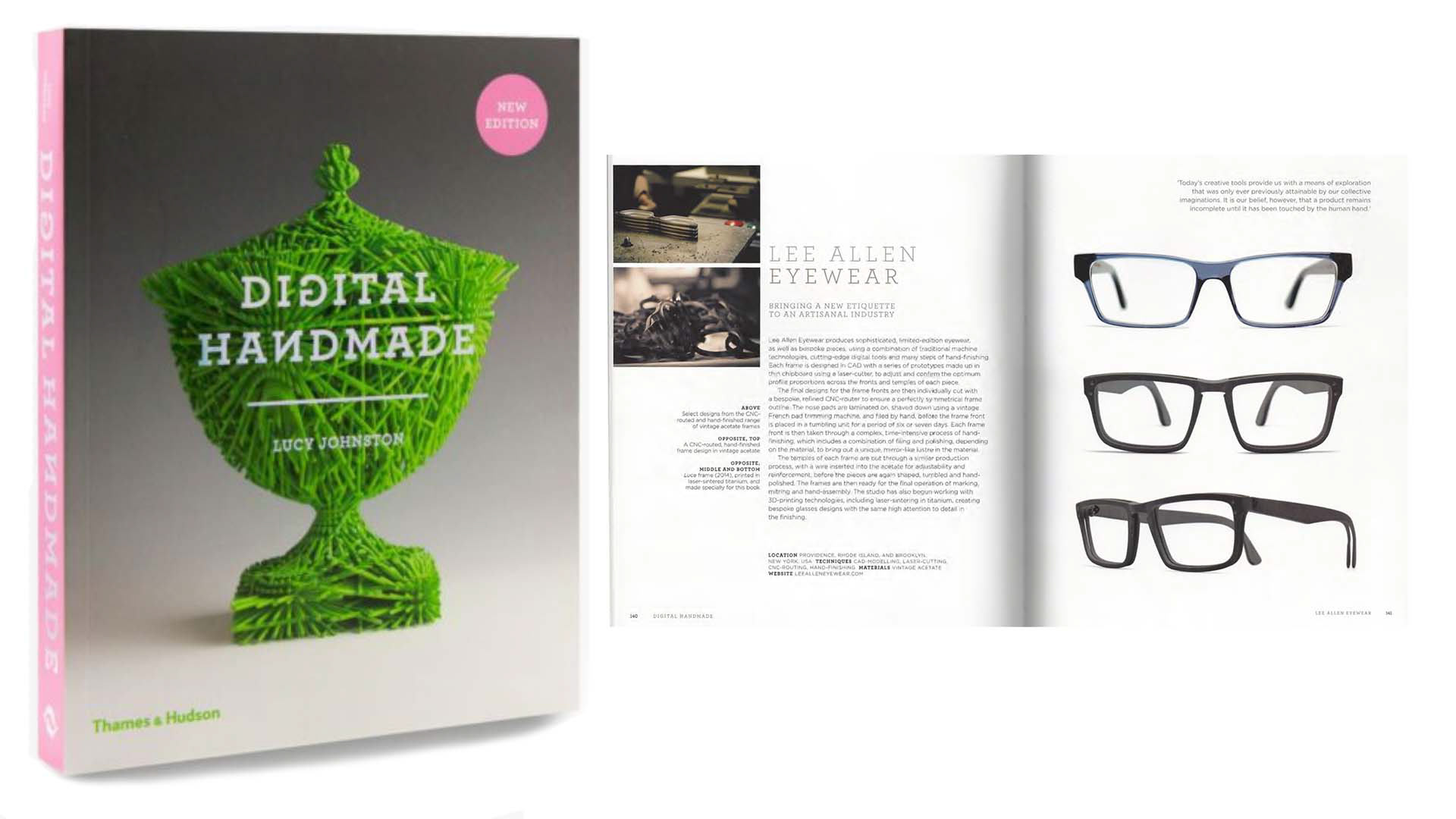 Featured work in "Digital Handmade: Craftsmanship and the New Industrial Revolution" by Lucy Johnston / Thames & Hudson Publishers / Lee Allen Eyewear / Custom3D printed eyewear + custom made for J.M.