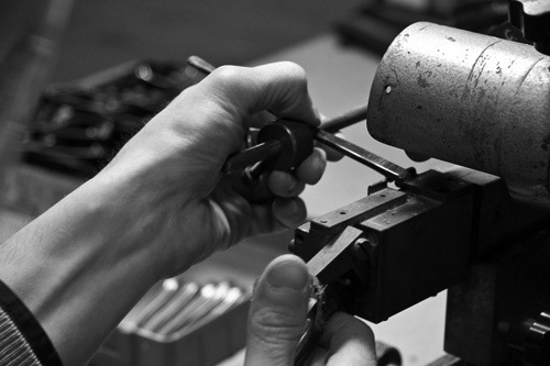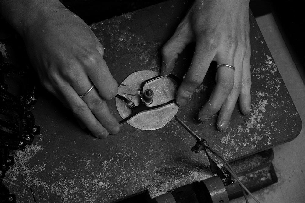 Above image / Photography by Raber Umphenour/ Handmade eyewear by Declan Halpin and Lee Kuczewski of Lee Allen Eyewear / In Studio, Mitering Temples.